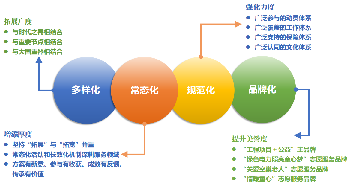 以品牌化提升美譽(yù)度。江蘇院志愿服務(wù)堅(jiān)持以品牌化擴(kuò)大影響力,在實(shí)踐中提煉出“工程項(xiàng)目+公益”主品牌和三大子品牌的“1+3”品牌矩陣。聚焦重點(diǎn)工程,創(chuàng)建“綠色電力照亮童心夢”服務(wù)品牌;聚焦老年群體,打造“關(guān)愛空巢老人”服務(wù)品牌;聚焦少兒群體,沉淀出“情暖童心”服務(wù)品牌。