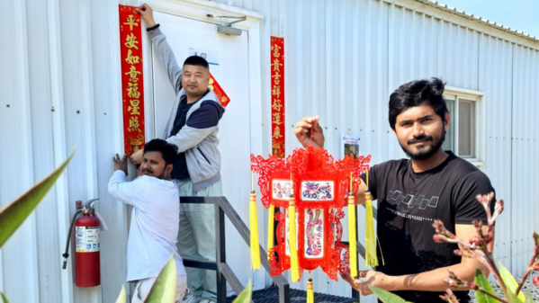 沙特國王港項(xiàng)目部精心策劃了一系列慶祝活動(dòng),讓中外員工共度歡樂祥和的中國年。團(tuán)拜會(huì)上,項(xiàng)目部向全體員工送上新春祝福,感謝大家的辛勤付出,并鼓勵(lì)團(tuán)隊(duì)在新的一年再接再厲,共創(chuàng)佳績(jī)。中外員工歡聚一堂,傾情演出,互致問候,現(xiàn)場(chǎng)氣氛熱烈喜慶。除夕夜,項(xiàng)目部組織了包餃子活動(dòng),大家紛紛動(dòng)手參與,搟皮、包餡、捏褶,忙得不亦樂乎。許多外籍員工在中國同事的指導(dǎo)下,第一次體驗(yàn)制作餃子的樂趣,感嘆這一傳統(tǒng)習(xí)俗的獨(dú)特魅力。年夜飯上,項(xiàng)目食堂特別準(zhǔn)備了豐盛的中式年菜,中外員工圍坐一堂,共享美食,暢談文化習(xí)俗。大家紛紛表示,將以更加飽滿的熱情投入工作,為項(xiàng)目高質(zhì)量履約貢獻(xiàn)力量,共同推動(dòng)“一帶一路”建設(shè)邁上新臺(tái)階。
