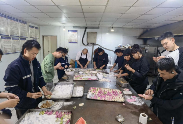 伊拉克示范學(xué)校項(xiàng)目部、安哥拉分公司、泰國(guó)華富里鐵路項(xiàng)目部聯(lián)動(dòng)項(xiàng)目屬地員工,一同包餃子、準(zhǔn)備年夜飯、看春晚。伴著春節(jié)喜慶的音樂(lè),項(xiàng)目部中屬員工一起搟面皮、拌餃子餡,邊包餃子邊講中國(guó)春節(jié)習(xí)俗。伊拉克示范學(xué)校項(xiàng)目還特意準(zhǔn)備了彩色的餃子,寓意新一年的生活多姿多彩。項(xiàng)目上還齊聚了中國(guó)各地“大廚”,在熱鬧的氛圍下,他們紛紛亮出自己的“拿手菜”,川菜、魯菜、湘菜,令人眼花繚亂、垂涎欲滴。在歡樂(lè)有趣的氛圍下,不同“樣式”的餃子包好了,不同菜系的年夜飯也準(zhǔn)備好了,大家共享美食、齊看春晚,堅(jiān)守一線的海外員工感受了異國(guó)他鄉(xiāng)不一樣的溫暖。