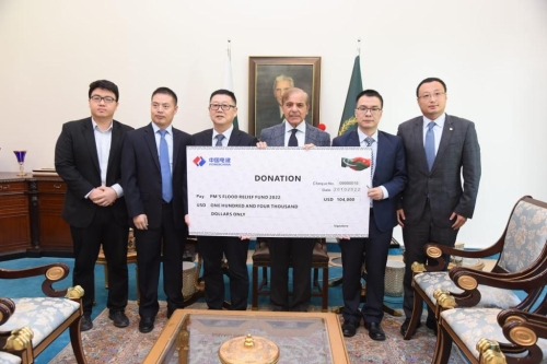 在洪水發(fā)生后,中國電建作為全巴中資企業(yè)會(huì)長單位,立即采取行動(dòng),號(hào)召全巴中資企業(yè)為救災(zāi)捐款捐物,28家中資企業(yè)相繼慷慨解囊,在8月26日完成了1550萬盧比(約合49萬人民幣)捐款。