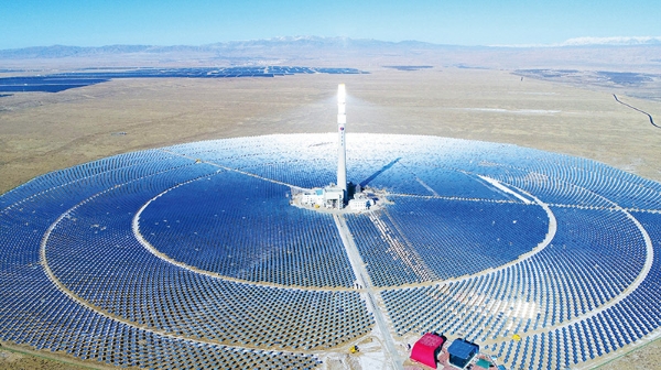 青海共和熔鹽塔式光熱電站是國(guó)家首批20個(gè)光熱示范項(xiàng)目之一,該項(xiàng)目有力地推動(dòng)和促進(jìn)了國(guó)內(nèi)光熱產(chǎn)業(yè)的發(fā)展。圖為青海共和熔鹽塔式光熱電站。 中國(guó)電建供圖 李強(qiáng)/攝
