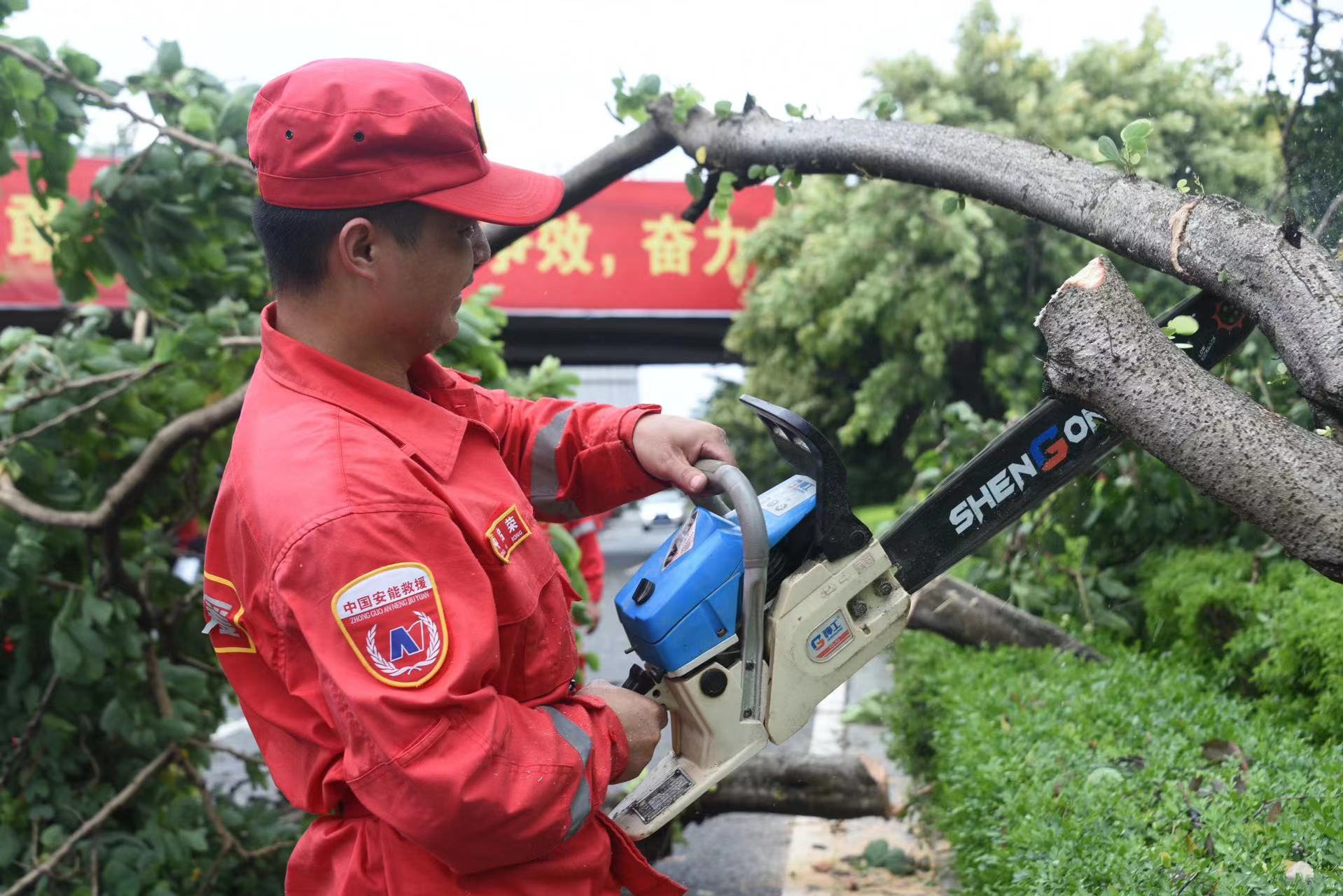 28日下午15時(shí)30分,搶險(xiǎn)救援隊(duì)伍到達(dá)晉江,開展對(duì)城區(qū)主干道晉光路、長興路的搶通任務(wù)。為確保搶險(xiǎn)安全、高效、有序,救援隊(duì)第一時(shí)間科學(xué)編組人員裝備,嚴(yán)密組織安全技術(shù)交底,投入裝載機(jī)、輪挖、油鋸等救援裝備器具,采取“分組分區(qū)作業(yè)、專人安全警戒、人裝協(xié)同推進(jìn)、裝載轉(zhuǎn)運(yùn)清障”戰(zhàn)法,科學(xué)高效組織清障搶通。