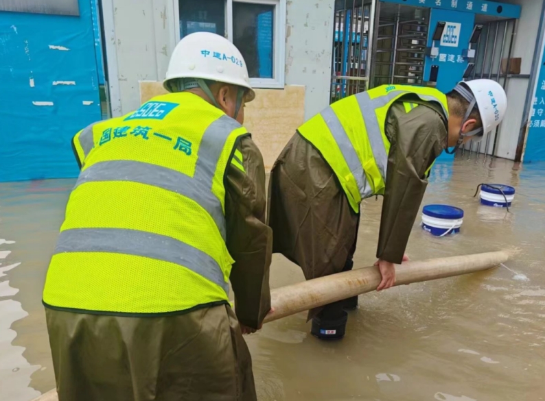 中建一局所屬在京項目通過壘筑防洪沙袋、運(yùn)轉(zhuǎn)大功率抽水機(jī)緊急排水、夜間組織人員通宵值班巡查等舉措,全力搶救物資,把損失降到最低,并配備防汛沙袋、塑料布以及水泵、挖機(jī)等進(jìn)行排水防汛,確保安全度過汛期。