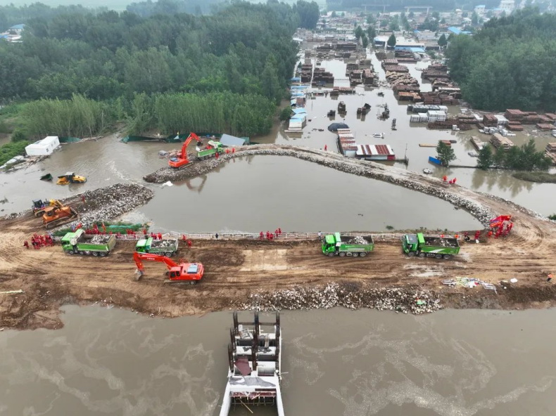 搶險過程中,中國安能充分發(fā)揮集團化作戰(zhàn)優(yōu)勢、專業(yè)技術(shù)優(yōu)勢、頑強作風優(yōu)勢,采取“道路搶通、主堤防護、圍堰進占、潰口封堵”的戰(zhàn)法實施救援;針對搶修筑路保通難、保障多元融合難、堤防加固圍堰搶筑時間緊、車輛眾多指揮難等不利因素,積極與地方政府共同研究道路疏通、保通方案,確保封堵石料及時運抵救援現(xiàn)場;全體搶險隊員發(fā)揚特別能吃苦、特別能戰(zhàn)斗的頑強精神,頂烈日、斗酷暑,24小時輪班作業(yè),全力以赴加快進度,提前完成第一道防線和第二道防線加固任務(wù)。