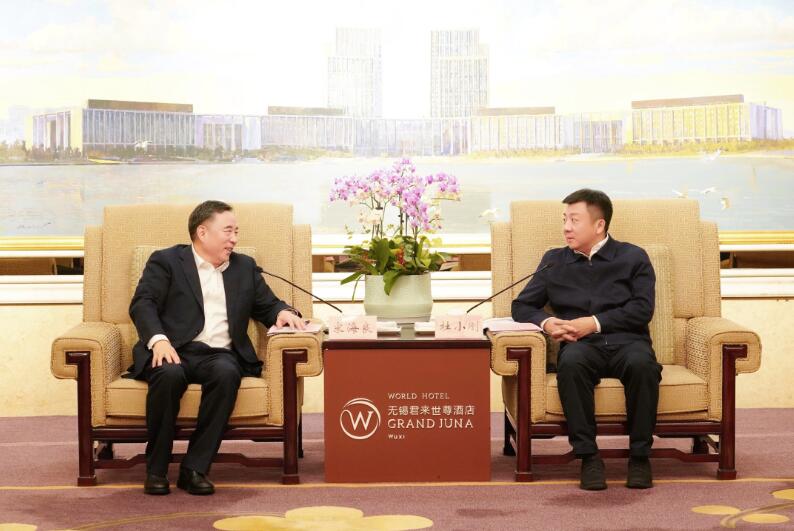杜小剛對(duì)宋海良一行到訪表示歡迎,對(duì)中國能建為無錫發(fā)展作出的貢獻(xiàn)表示感謝,并簡要介紹了無錫市經(jīng)濟(jì)社會(huì)發(fā)展情況。他說,當(dāng)前,無錫正全面落實(shí)習(xí)近平總書記視察江蘇重要講話指示精神,大力推進(jìn)能源綠色低碳轉(zhuǎn)型、資本金融產(chǎn)業(yè)和基礎(chǔ)設(shè)施建設(shè),加快打造新時(shí)代工商名城,爭當(dāng)踐行新發(fā)展理念高質(zhì)量發(fā)展示范區(qū)和中國式現(xiàn)代化建設(shè)的城市范例,呈現(xiàn)出良好的發(fā)展態(tài)勢。他表示,中國能建是我國能源電力、基礎(chǔ)設(shè)施建設(shè)國家隊(duì)、主力軍,企業(yè)業(yè)務(wù)布局與無錫市未來發(fā)展戰(zhàn)略高度契合,雙方合作空間廣闊,希望中國能建持續(xù)關(guān)注無錫、加碼無錫,聚焦新興產(chǎn)業(yè)、未來產(chǎn)業(yè)等方向,發(fā)揮企業(yè)經(jīng)營優(yōu)勢、科技優(yōu)勢、資源優(yōu)勢,導(dǎo)入更多城市建設(shè)、生態(tài)治理、軌道交通、市政配套等資源,合力搶占新能源產(chǎn)業(yè)新賽道,助力無錫奮力在國家“強(qiáng)起來”的歷史進(jìn)程中烙下鮮明印記。無錫將提供最優(yōu)質(zhì)服務(wù)、營造最優(yōu)良環(huán)境,與中國能建并肩扛起新使命、攜手譜寫新篇章,樹立新時(shí)代央地合作新典范,合力為高質(zhì)量發(fā)展大局作出更大貢獻(xiàn)。
