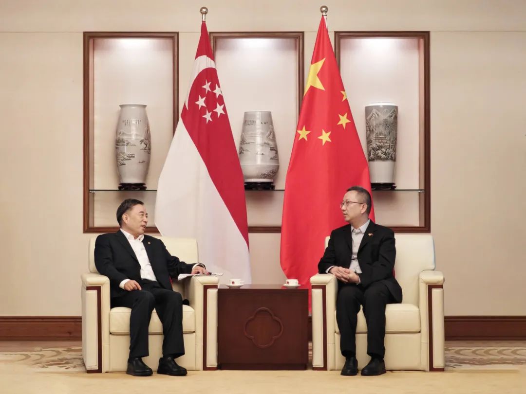 中國(guó)能建黨委書記、董事長(zhǎng)宋海良與中國(guó)駐新加坡大使館臨時(shí)代辦朱憬會(huì)談