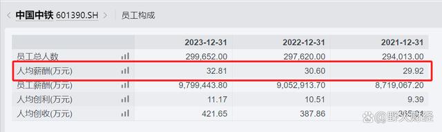 至去年末,中鐵股份的職工總數(shù)近30萬人,去年人均創(chuàng)收422萬元,人均創(chuàng)利11.2萬元,人均薪酬則近33萬元,比2022年增加2萬多元,在建筑企業(yè)中居前。
