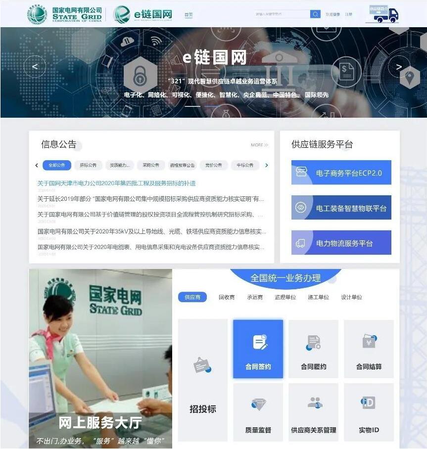 “e鏈國網(wǎng)”秉持“一網(wǎng)通辦”理念,通過前端頁面集成、整合智慧供應鏈后端各支撐業(yè)務系統(tǒng),為國家電網(wǎng)公司內(nèi)外部用戶提供一站式、全方位、便捷化的業(yè)務引導和信息共享服務。