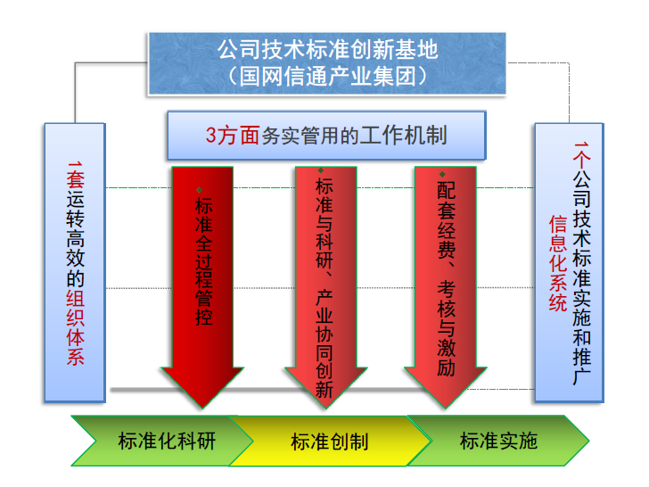 健全“1+3+1”體系機制該創(chuàng)新基地基于2019籌建工作基礎(chǔ),進一步健全了“1+3+1”組織體系和工作機制(即:以搭建一套運轉(zhuǎn)高效的組織體系為核心,以構(gòu)設(shè)“標(biāo)準(zhǔn)全過程管控,標(biāo)準(zhǔn)與科研、產(chǎn)業(yè)協(xié)同創(chuàng)新,配套經(jīng)費、考核與激勵”三方面務(wù)實管用的工作機制為抓手,以建設(shè)完善一個公司技術(shù)標(biāo)準(zhǔn)實施和推廣信息化系統(tǒng)為依托,統(tǒng)籌推進創(chuàng)新基地各項任務(wù))。完善“標(biāo)準(zhǔn)全過程管控,標(biāo)準(zhǔn)與科研、產(chǎn)業(yè)協(xié)同創(chuàng)新,配套經(jīng)費、考核與激勵”三方面工作機制。搭建了國家電網(wǎng)公司技術(shù)標(biāo)準(zhǔn)體系本地數(shù)據(jù)庫和技術(shù)標(biāo)準(zhǔn)實施評價信息化平臺,完成公司制度標(biāo)準(zhǔn)智能管理平臺建設(shè),構(gòu)建了首個電力行業(yè)標(biāo)準(zhǔn)與制度知識圖譜庫,初步形成“電網(wǎng)全業(yè)務(wù)神經(jīng)網(wǎng)絡(luò)”