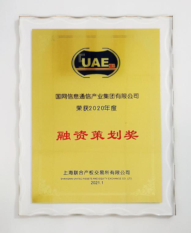 國(guó)網(wǎng)信通產(chǎn)業(yè)集團(tuán)榮獲上海聯(lián)合產(chǎn)權(quán)交易所 2020年度“融資策劃獎(jiǎng)”