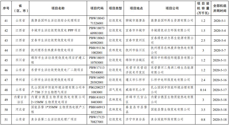 關(guān)于公布2020年生物質(zhì)發(fā)電中央補(bǔ)貼項目申報結(jié)果的通知