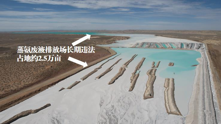 ▲圖3 2023年9月,督察組暗查發(fā)現(xiàn),青海發(fā)投堿業(yè)公司、中鹽青海昆侖堿業(yè)公司蒸氨廢液排放場長期違法占地約2.5萬畝