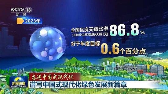 中國(guó)是世界上空氣質(zhì)量改善最快的國(guó)家。2023年全國(guó)優(yōu)良天數(shù)比率(扣除沙塵異常超標(biāo)天后)為86.8%,好于年度目標(biāo)0.6個(gè)百分點(diǎn);全國(guó)地表水水質(zhì)優(yōu)良(Ⅰ—Ⅲ類)斷面比例為89.4%,同比上升1.5個(gè)百分點(diǎn)。