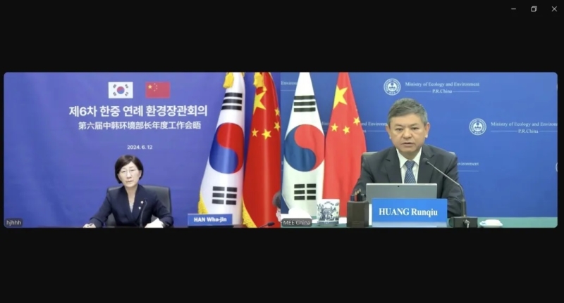 6月12日,中韓環(huán)境部長2024年度工作會(huì)晤以視頻方式舉行。生態(tài)環(huán)境部部長黃潤秋和韓國環(huán)境部部長韓和真出席會(huì)議。雙方就大氣污染防治、生物多樣性保護(hù)、塑料污染治理等議題進(jìn)行深入交流。