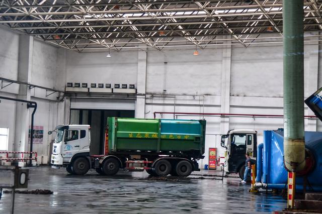 9月19日,在山東啟迪濟能環(huán)??萍加邢薰?,運輸車在負壓車間內(nèi)卸載生活垃圾。