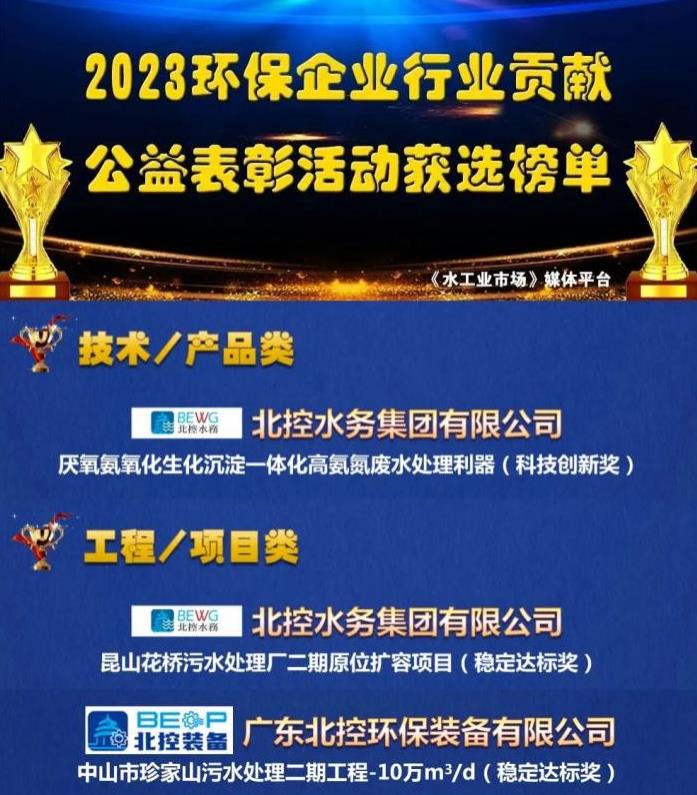 1月2日,2023環(huán)保企業(yè)行業(yè)貢獻(xiàn)公益表彰活動(dòng)榜單正式揭曉,北控水務(wù)集團(tuán)“厭氧氨氧化生化沉淀一體化高氨氮廢水處理利器”榮獲科技創(chuàng)新獎(jiǎng),“昆山花橋污水處理廠二期原位擴(kuò)容項(xiàng)目”及“中山市珍家山污水處理二期工程-10萬m³/d”榮獲穩(wěn)定達(dá)標(biāo)獎(jiǎng)。