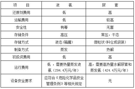兩種還原劑在安全性和經濟性上各有優(yōu)勢,采用尿素作為還原劑是比較安全的,但初期投資造價高,運行費用也高;采用液氨作為還原劑,相對初期投資造價低,運行費用低,但液氨作為重大危險源,在運輸和儲備時存在一定的安全隱患,在運輸成本上以及在生產安全管理上對電廠的運行水平要求較高,存在一定的危險性。因此從經濟或運行維護成本考慮,還原劑可以選擇液氨,但從安全角度考慮,則應選擇尿素,中能自備電廠綜合考慮各種因素最終選擇尿素是較好的選擇。