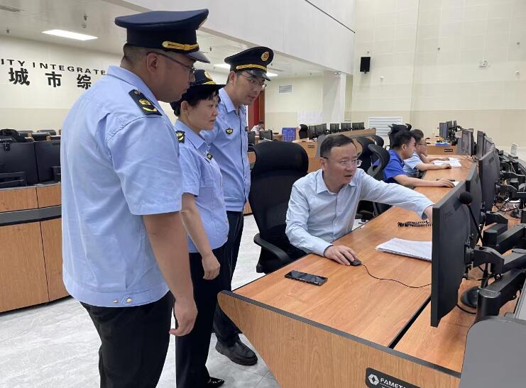 圖為雙碳數(shù)字化平臺工程師為執(zhí)法人員講解指揮中心的各項功能。 胡義 攝