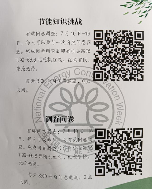此外,記者還了解到,主辦方搭建了線上有獎節(jié)能知識挑戰(zhàn)賽和調(diào)查問卷平臺,從7月10日到7月16日,平臺每天8時開啟問卷通道,0時關(guān)閉。完成挑戰(zhàn)則有機(jī)會獲得最高66.6元的現(xiàn)金紅包。紅包有限,先搶先得。