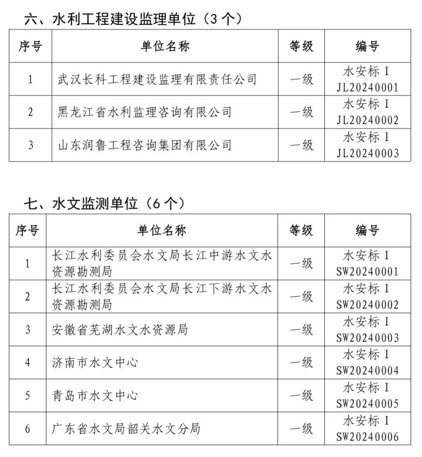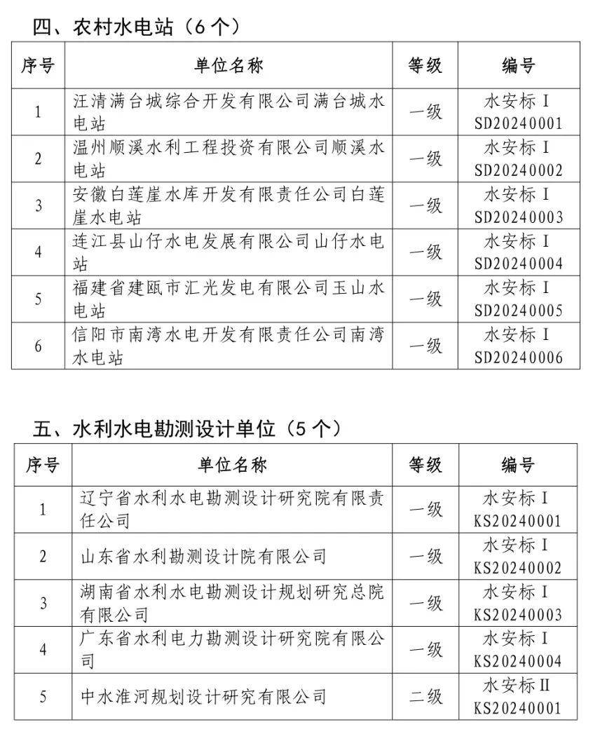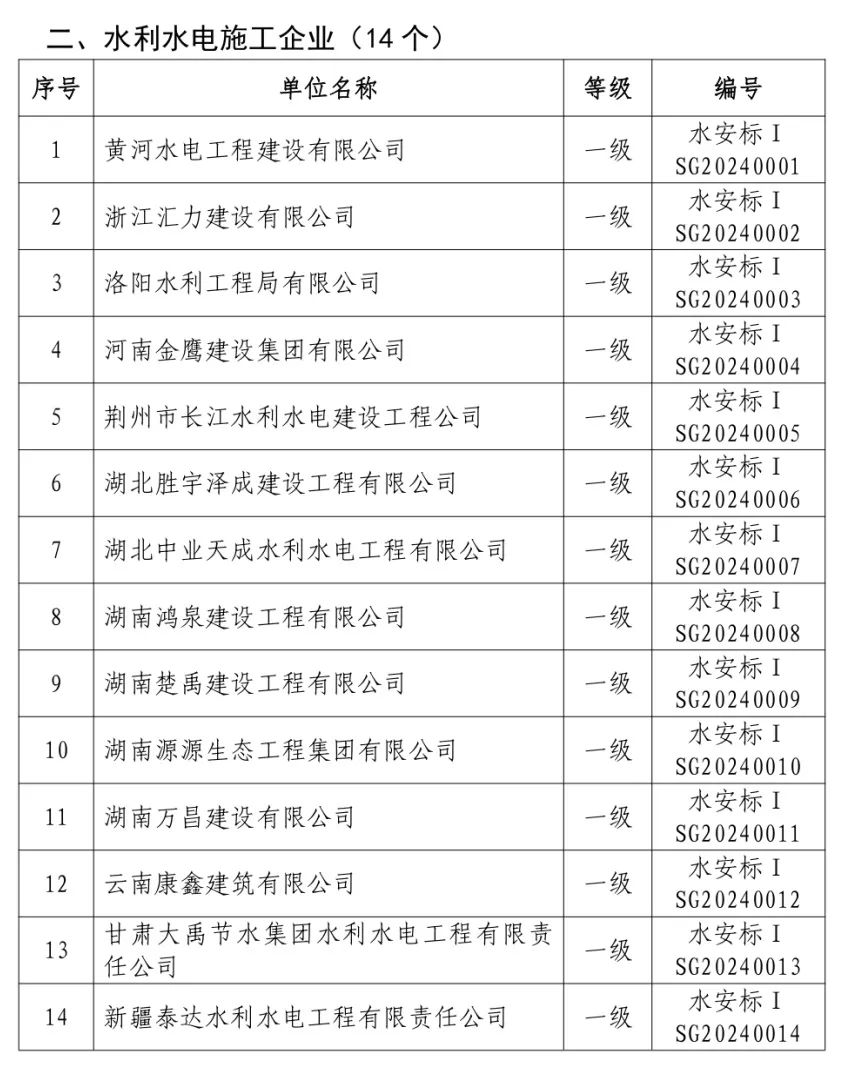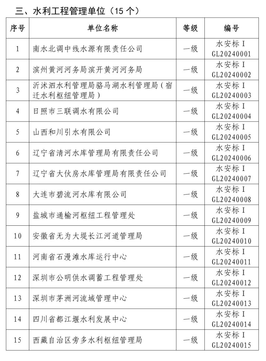 中新網(wǎng)1月22日電 據(jù)中國(guó)水利官方微信消息,根據(jù)《水利部關(guān)于印發(fā)〈水利安全生產(chǎn)標(biāo)準(zhǔn)化評(píng)審管理暫行辦法〉的通知》《水利部關(guān)于印發(fā)農(nóng)村水電站安全生產(chǎn)標(biāo)準(zhǔn)化達(dá)標(biāo)評(píng)級(jí)實(shí)施辦法(暫行)的通知》《水利部辦公廳關(guān)于印發(fā)〈水利安全生產(chǎn)標(biāo)準(zhǔn)化評(píng)審管理暫行辦法實(shí)施細(xì)則〉的通知》《水利部關(guān)于水利部安全生產(chǎn)標(biāo)準(zhǔn)化評(píng)審有關(guān)事項(xiàng)的通知》和《水利部辦公廳關(guān)于水利水電勘測(cè)設(shè)計(jì)等四類單位安全生產(chǎn)標(biāo)準(zhǔn)化有關(guān)工作的通知》,經(jīng)評(píng)審,遼寧省葠窩水庫(kù)管理局有限責(zé)任公司等57個(gè)單位為安全生產(chǎn)標(biāo)準(zhǔn)化一級(jí)單位、中水淮河規(guī)劃設(shè)計(jì)研究有限公司等2個(gè)單位為安全生產(chǎn)標(biāo)準(zhǔn)化二級(jí)單位,名單如下。