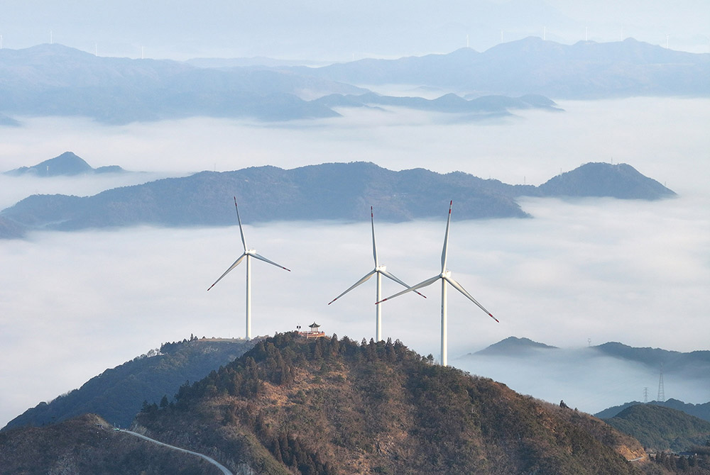 2025年3月1日,浙江省臺州市三門縣湫水山風(fēng)力發(fā)電場,風(fēng)力發(fā)電機(jī)迎風(fēng)旋轉(zhuǎn),產(chǎn)生源源不斷的綠色電能。近年來,三門縣堅持綠色發(fā)展理念,發(fā)展高山風(fēng)能綠色能源產(chǎn)業(yè),助力低碳減排,實現(xiàn)生態(tài)環(huán)境持續(xù)發(fā)展。