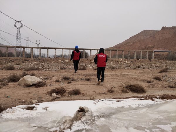 “不行咱們把鞋脫了蹚過去吧,繞著走太浪費時間了。”巡視人員楊玉來一邊向雙手哈著“熱氣”,一邊準(zhǔn)備脫鞋。