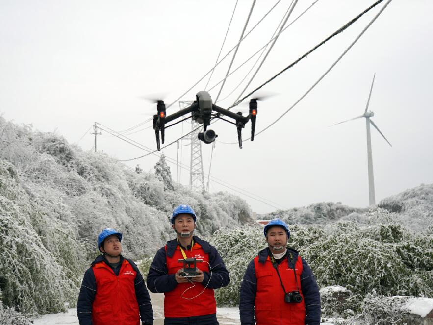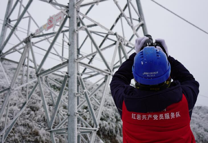 中國電力網訊 “110千伏四黎線今日最大覆冰厚度7.9毫米,目前風速3.5米每秒,溫度零下4度……”“小心一點,要走兩邊有草叢的地方,中間的道路結冰了,容易滑倒。”1月9日,國網重慶武隆供電公司輸電運維檢修班成員吳鼎、趙樓等人來到武隆區(qū)和順鎮(zhèn)四眼坪鄉(xiāng)對覆冰線路開展特殊巡視。在白雪皚皚的四眼坪,國家電網紅巖共產黨員服務隊隊服的顏色成了冰雪世界里最靚麗的一抹紅,他們手拿著無人機、砍刀、繩索、望遠鏡、風速儀等設備再一次踏入他們熟悉的“冰雪戰(zhàn)場”。