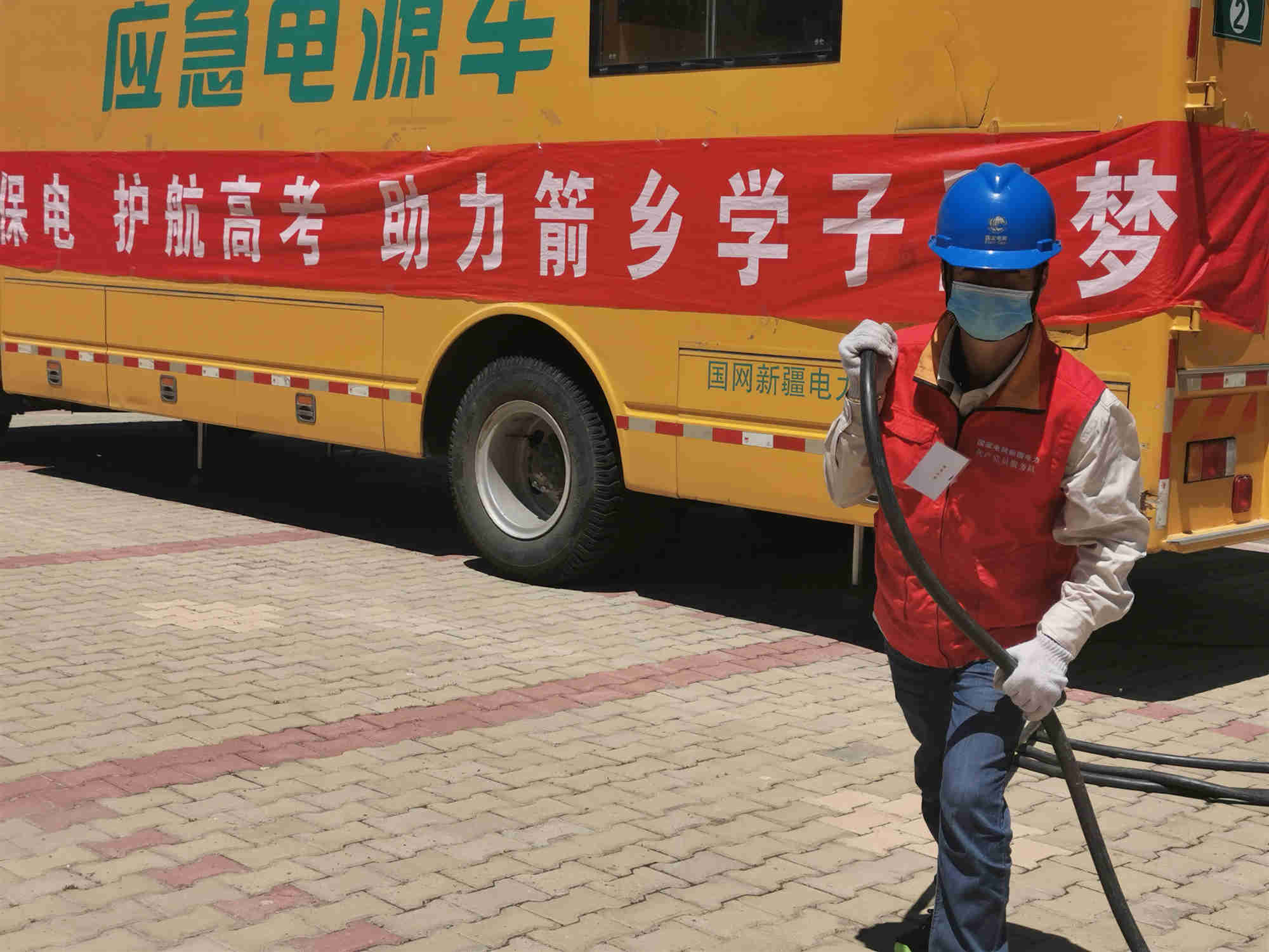 中國電力網(wǎng)訊 7月7日清晨6時,國網(wǎng)伊犁供電公司黨員服務隊員早早趕往轄區(qū)高考考點。到現(xiàn)場后兩人要對應急供電車輛和線路設備做最后的檢查,確??荚嚻陂g電力供應無憂。