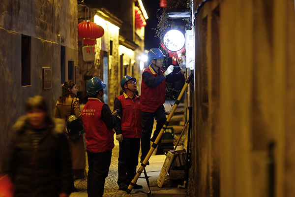 夜幕降臨,前童古鎮(zhèn)條條古巷的燈光開(kāi)始亮起來(lái),但古巷旁水渠里仍倒影著隊(duì)員們忙碌的身影。有了國(guó)網(wǎng)寧??h供電公司工作人員不辭辛勞的保供電,留浙過(guò)年的新寧海人在前童古鎮(zhèn)這個(gè)元宵節(jié)將過(guò)得格外溫暖。