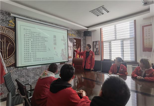 此次道德講堂共六個(gè)環(huán)節(jié):一是唱歌曲,全體人員齊唱《清正廉潔歌》,大家跟著旋律動(dòng)情歌唱;二是看短片《標(biāo)點(diǎn)符號話廉潔》,通過觀看短片接受道德洗禮;三是誦讀經(jīng)典詩詞《入京詩》,學(xué)習(xí)明朝名臣、民族英雄于謙的“兩袖清風(fēng)朝天去”品格;四是講述楊震“暮夜拒金”的故事,筑牢拒腐防變的思想道德防線;最后送祝福環(huán)節(jié),分局黨群專責(zé)為青工獻(xiàn)上一份特殊的“祝福”,大家用手機(jī)掃描二維碼,打開一份《公司員工違規(guī)違紀(jì)行為處理規(guī)定》,便于大家日常能夠隨時(shí)用手機(jī)打開進(jìn)行學(xué)習(xí),強(qiáng)化全體職工自律意識,規(guī)范職工從業(yè)行為,真正讓該規(guī)定根植于員工心靈深處,切實(shí)做到自重、自行、自律。
