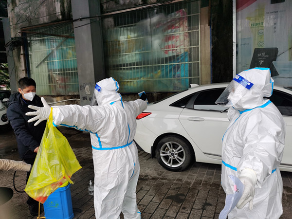 “您好,您需要的菜品我們已經(jīng)買(mǎi)回來(lái)了,放在您的家門(mén)口,您方便了出來(lái)取一下。”這是青年黨員覃婕這些天來(lái)重復(fù)最多的話,在中興小區(qū)還有很多和覃婕一樣的“青春面孔”,他們主動(dòng)充當(dāng)小區(qū)居民的跑腿員,為大家采買(mǎi)送遞,正是因?yàn)橛辛怂麄兊呐芮芭芎螅用駛兊幕旧钗镔Y才得以正常供應(yīng),才能夠更安心的“宅”在家里,說(shuō)起他們,社區(qū)和居民都是一片褒獎(jiǎng)之詞。