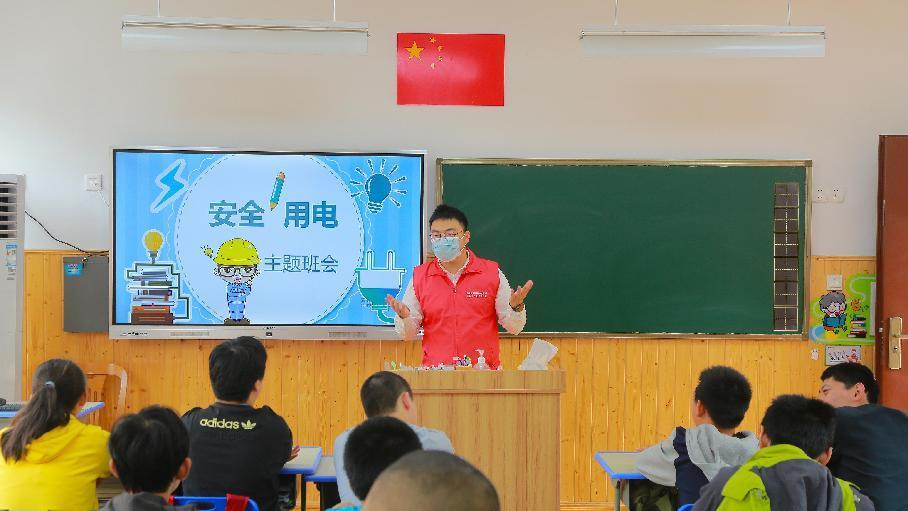 國(guó)網(wǎng)浙江諸暨供電公司志愿者在諸暨市東和鄉(xiāng)初中電力愛(ài)心教室,為同學(xué)們科普安全用電知識(shí)