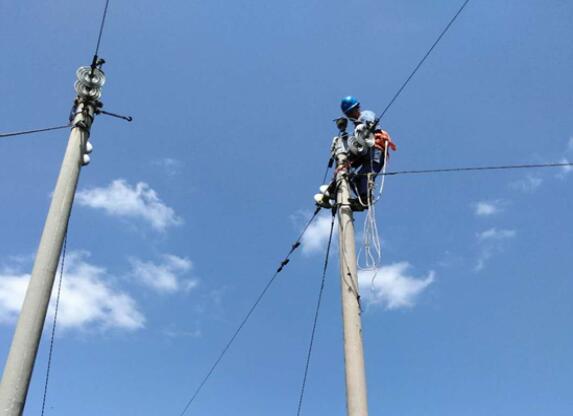 故障搶修刻不容緩,搶修人員經(jīng)過現(xiàn)場巡視分析,申請拉開10千伏頂大線刀閘,及時恢復(fù)其他用戶供電。與此同時,搶修人員分工合作,一組準(zhǔn)備搶修物資及工器具,一組聯(lián)系停電程序,一切準(zhǔn)備就緒后,大家立即投入搶修工作。大家積極配合、相互協(xié)調(diào),井然有序的進行著各種操作,汗水不斷的從額頭上流下來。工作服全部被打濕了,他們卻全然不顧緊張的忙碌著,就連午餐也是快速的扒完盒飯便投入工作。