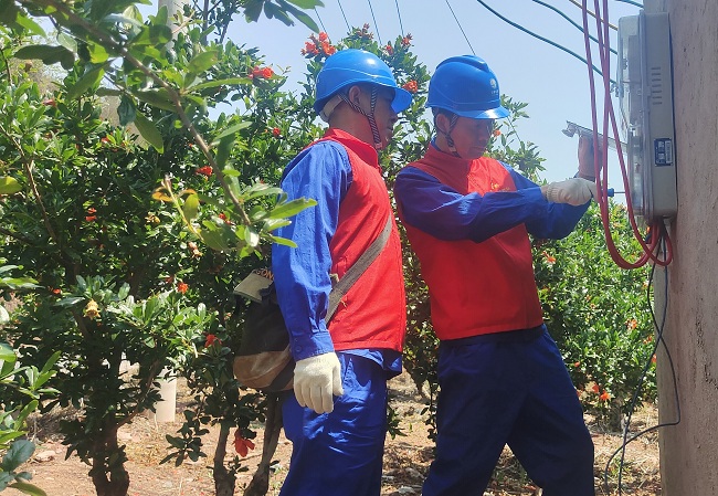 為了保證石榴灌溉供電無虞,國網(wǎng)會理市供電公司提前謀劃,組織黨員服務(wù)隊開展“黨建+石榴保供”活動,主動將服務(wù)送到田間地頭,零距離了解榴農(nóng)當(dāng)前用電情況和石榴灌溉用電需求。隊員們對涉及灌溉用途的配變、線路等電力設(shè)施進(jìn)行巡視檢查和維護(hù)檢修,對榴農(nóng)的小型配電房、線路、水泵設(shè)備等進(jìn)行檢查,幫助其分析存在的安全用電隱患和苗頭性問題,有效解決灌溉用電方面的“疑難雜癥”。