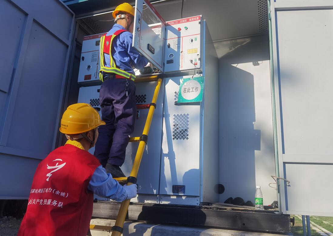 中國電力網(wǎng)訊  8月9日上午6點,在余姚市河姆渡鎮(zhèn)蘆山寺村,國網(wǎng)余姚市供電公司電力人員正如火如荼地抓緊施工,給圣昊高科技設(shè)施農(nóng)業(yè)觀光產(chǎn)業(yè)園新安裝一臺800千伏安變壓器,為智慧農(nóng)業(yè)種植提供充足電力。