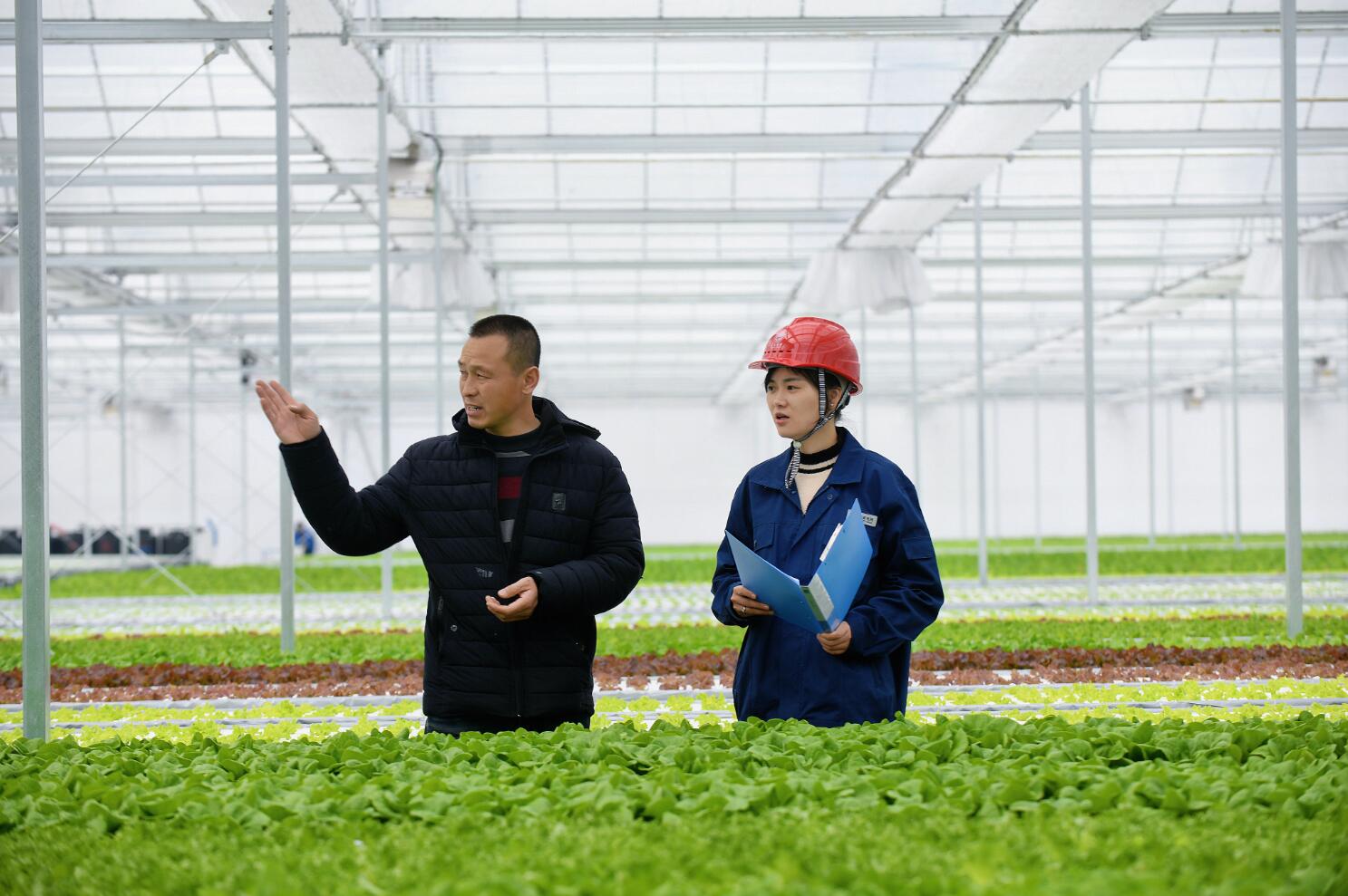 田野上的作物剛開始生長,各種現(xiàn)代化大棚里的蔬菜已經(jīng)煥發(fā)了盎然的生機(jī)。在橫坎頭村的蔚藍(lán)智谷植物工廠里,綠油油的菠菜、生菜、小松菜等蔬菜種在整齊的培養(yǎng)基上,一個(gè)個(gè)高大的溫室大棚連在一起,猶如工廠的車間,工作人員通過智能系統(tǒng)控制著溫度、濕度和營養(yǎng)液輸送。這樣的農(nóng)業(yè)種植模式打破了傳統(tǒng)的種植概念,將蔬菜種植“工廠化”,品質(zhì)和市場(chǎng)都得到了良好的保障。