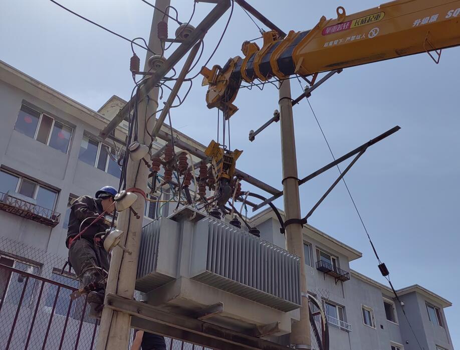 中國電力網(wǎng)訊(通訊員 李欣)“向右面一點,往下放,好……”。5月8日內(nèi)蒙古電力(集團)有限責(zé)任公司呼和浩特供電公司賽罕分公司的工作人員對10kV泰安變9613滿東線干休所民政局小區(qū)更換變壓器,以確保居民日常生活可靠用電。
