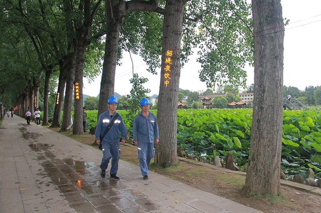 有了穩(wěn)定電力的注入,安龍供電局加強(qiáng)應(yīng)急值班,從8個供電所抽調(diào)工作人員,從統(tǒng)一調(diào)配,固定到點(diǎn),現(xiàn)場值守。多舉并措對新建臺區(qū)開展線路特巡和隱患整改,并對景區(qū)內(nèi)酒店、餐飲、夜市等場所進(jìn)行用電檢查,電力“藍(lán)”持續(xù)照亮荷花塘。