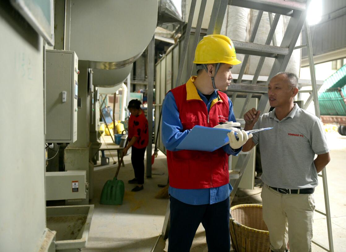 糧食種植和生產(chǎn)是“國之大者”,確保糧食和重要農(nóng)戶的可靠用電,一直以來都是宏宇公司積極服務(wù)鄉(xiāng)村振興的重點工作??紤]到秋收將至,為確保大批稻谷加工高峰期期間用電安全,宏宇公司成立秋收保電小組,提前深入田間地頭對涉農(nóng)供電線路和設(shè)備進行排查,上門走訪轄區(qū)內(nèi)農(nóng)機站、糧庫等重要用戶,及時消除可能存在的安全隱患,助力農(nóng)戶秋收顆粒歸倉。