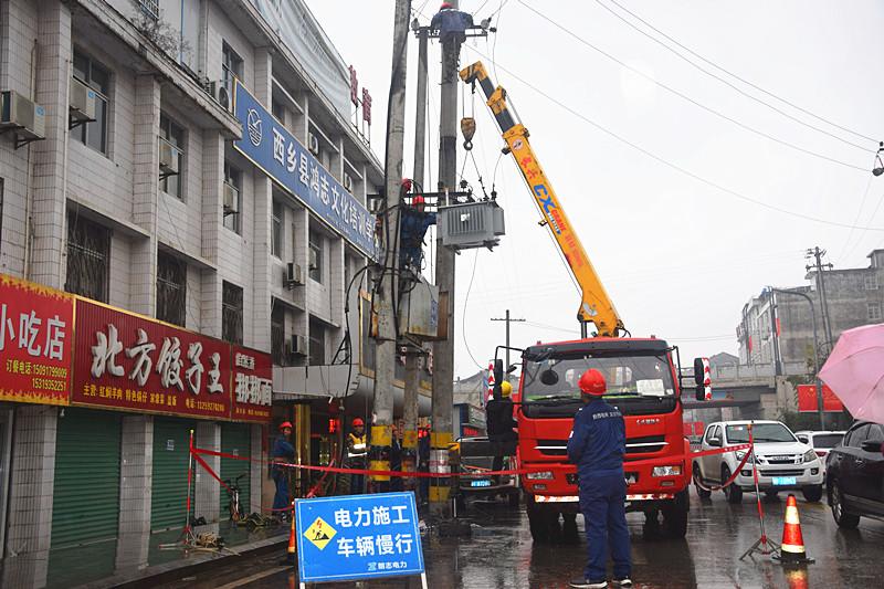 12月25日,冬雨霏霏、寒風(fēng)瑟瑟,在陜西省西鄉(xiāng)縣北環(huán)路上,一群電力工人正在站前廣場配變臺區(qū)開展更換導(dǎo)線、變壓器等項搶修工作,工作負(fù)責(zé)人一邊有序的組織工作,一邊耐心的安撫周圍的群眾。