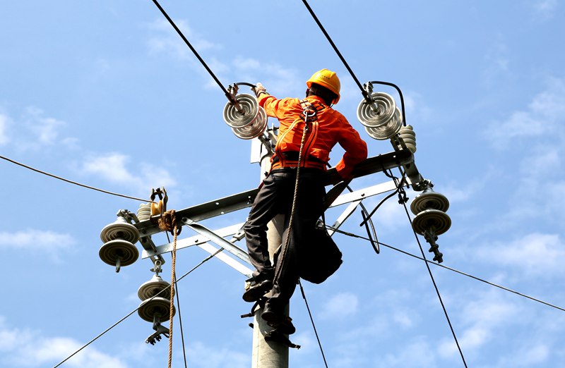 四川通江供電公司高溫天氣電力員工作業(yè)忙