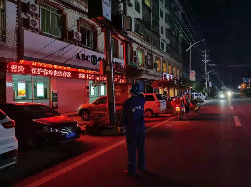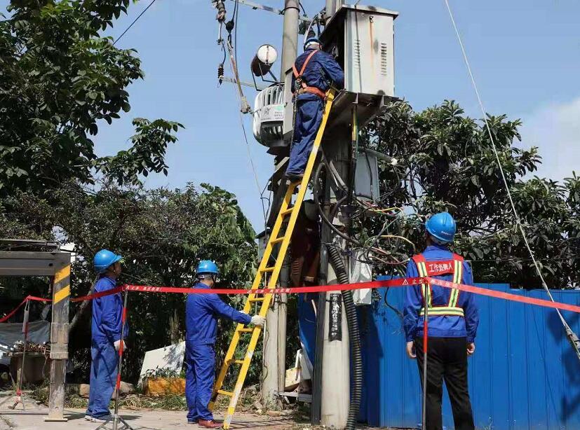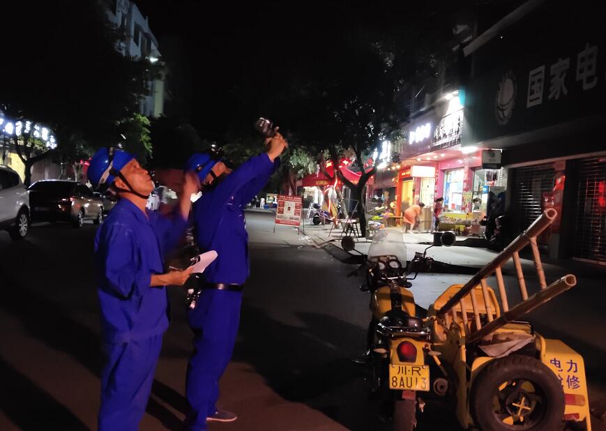 7月31日,國(guó)網(wǎng)南充市高坪供電公司工作人員對(duì)10千伏東岸線梧桐閣臺(tái)變及JP柜故障緊急搶修。(茍中華 攝)
