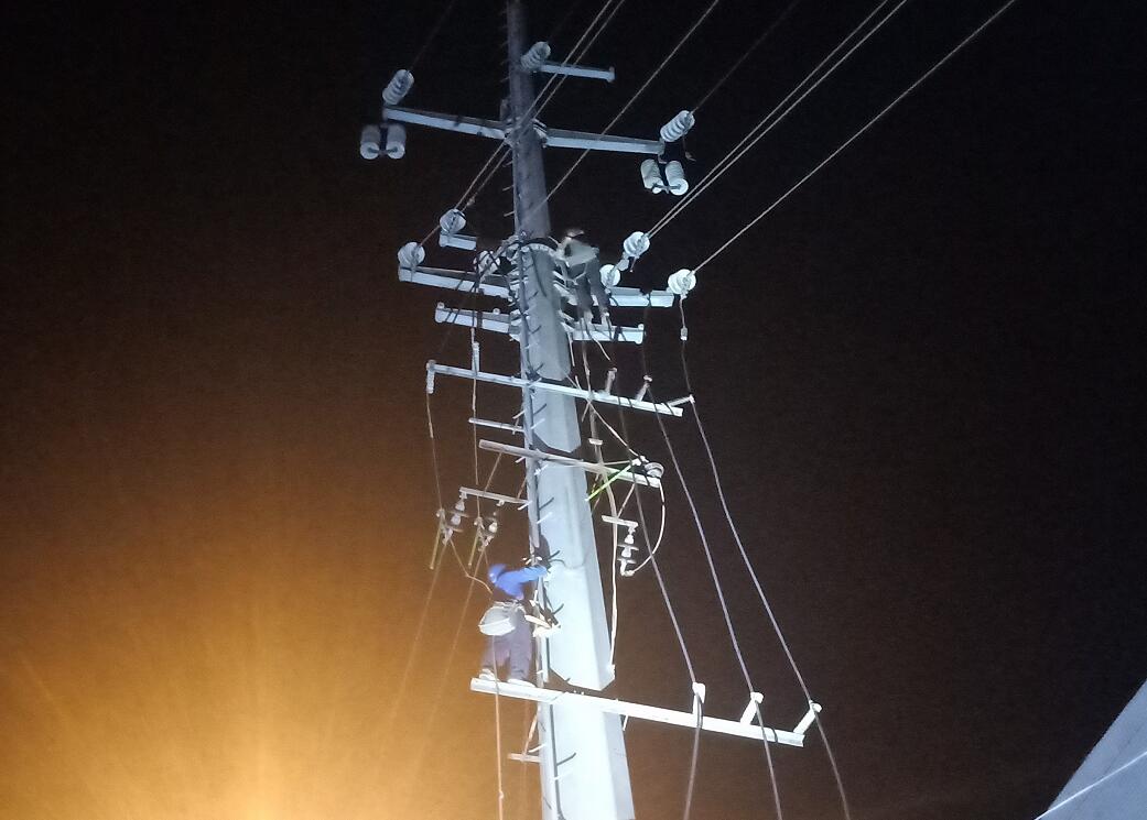 8月2日,國(guó)網(wǎng)南充市高坪供電公司工作人員對(duì)10千伏東賓線1#桿緊急處缺。(黃萬(wàn)興 攝)