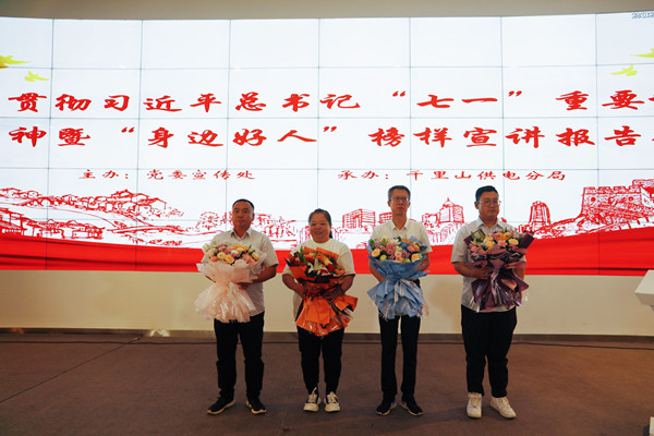 報告會上,四位宣講人用質(zhì)樸的語言、鮮活的事例,講述了一個個溫暖感人的真實(shí)故事——在平凡崗位上用堅(jiān)韌與執(zhí)著為電網(wǎng)安全撐起了一片晴朗的天空,對電力事業(yè)有著無限忠誠的越志軍;用一顆真誠心充當(dāng)“武器”,用淋漓的汗水支撐起使命,用堅(jiān)定的意志承擔(dān)起疫情防控工作的電力人吳飛云鵬;工作中兢兢業(yè)業(yè)、勤勤懇懇,生活中助人為樂、傳承美德,用實(shí)際行動踐行著電力人的擔(dān)當(dāng)與奉獻(xiàn)的楊俊芝;九年征程一心堅(jiān)持,發(fā)揮基層黨組織的戰(zhàn)斗堡壘作用,為社區(qū)居民解決難事,為受難群眾提供幫助的康煒。他們的故事感人至深、催人奮進(jìn),生動呈現(xiàn)了“身邊好人”的愛舉、壯舉、善舉、孝舉、義舉引起了現(xiàn)場強(qiáng)烈共鳴,感染著現(xiàn)場所有人。宣講結(jié)束后,志愿者們?yōu)榈綀龅?ldquo;身邊好人”獻(xiàn)花,大家紛紛表示要學(xué)習(xí)“身邊好人”,傳遞榜樣力量,奮斗新時代。