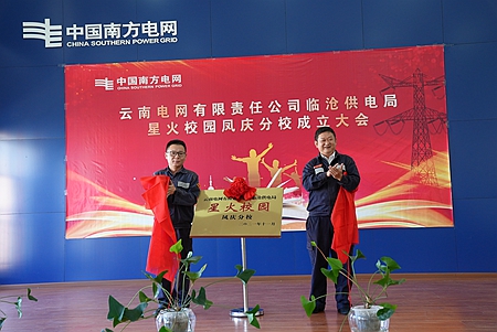 “我是臨滄鳳慶供電局員工,光榮的南網(wǎng)人,忠誠于南方電網(wǎng)事業(yè)······”隨著錚錚誓言,臨滄鳳慶供電局星火校園鳳慶分校揭牌儀式在鳳慶供電局本部404會議室隆重舉行。前期,鳳慶供電局對校領(lǐng)導(dǎo)議事機構(gòu)、政教處、教務(wù)處、教研組、總務(wù)處及一系列人員進行職責(zé)劃分并下發(fā),宣貫臨滄供電局臨星校園鳳慶分校創(chuàng)建方案,明確辦校校名及校訓(xùn),確立辦校理念及目標(biāo),明晰細(xì)化涵蓋班級培訓(xùn)實施內(nèi)容等。經(jīng)過緊鑼密鼓的籌備,臨星校園鳳慶分校在全場領(lǐng)導(dǎo)和與會同志們的共同見證下進行“星火校園鳳慶分校”揭牌,這標(biāo)志著臨滄鳳慶供電局星火校園鳳慶分校正式成立。