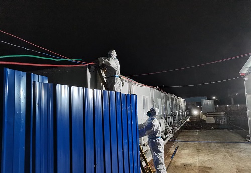 疫情就是命令,防控就是責(zé)任。國(guó)網(wǎng)東安縣供電公司黨委積極部署制定方案,以楊成為首的4名工作人員進(jìn)入防控區(qū)域進(jìn)行作業(yè),著全套防護(hù)服、攜帶登桿、搶修各類(lèi)工具及材料進(jìn)入管控區(qū)域。隨后,工作人員開(kāi)始對(duì)院內(nèi)的變壓器以及用電線路等設(shè)備進(jìn)行全面檢查,為盡快恢復(fù)隔離點(diǎn)供電,從排查電氣、監(jiān)測(cè)漏電保護(hù)器、更換導(dǎo)線,大家爭(zhēng)分奪秒。“夜間作業(yè)視線不好,要特別注意安全,要戴好口罩,注意自身的防護(hù)!”楊成叮囑每一位搶修人員,在應(yīng)急搶修燈的照明下,工作人員不敢有絲毫的麻痹大意,嚴(yán)密監(jiān)護(hù)作業(yè)……一道道工序有條不紊地進(jìn)行著,雖然天氣變冷,但是密不透風(fēng)的防護(hù)服和口罩很快便被汗水打濕,他們?cè)谝鼓恢衼?lái)回穿梭,與時(shí)間賽跑,與疫情競(jìng)速,用時(shí)6小時(shí),奮戰(zhàn)到晚上23點(diǎn)圓滿完成緊急供電任務(wù)。