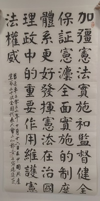 本次活動采取“線上+線下”形式全面開展,以豐富多彩的活動,深入學(xué)習(xí)宣傳貫徹習(xí)近平法治思想和習(xí)近平總書記關(guān)于憲法的重要論述。本次活動中,組織全處職工積極參加“學(xué)習(xí)宣傳貫徹黨的二十大精神,推動全面貫徹實施憲法”線上答題活動,共58人參加為期一周的線上答題;組織全體職工觀看烏海市及烏海供電公司普法宣傳視頻2個,營造出尊法學(xué)法守法用法的良好法治氛圍;通過樓宇內(nèi)張貼宣傳海報的方式使職工群眾隨時了解憲法知識,實現(xiàn)常態(tài)化普法宣傳,本次張貼憲法宣傳海報共6張;該處職工楊俊芝撰寫普法題材的書法作品1幅,青年職工制作電腦繪畫作品1幅以及隨手拍等,通過不同的方式宣傳學(xué)習(xí)憲法、民法典、電力法、公司法、中央企業(yè)合規(guī)管理辦法等,鼓勵大家要樹立牢固的法治觀念,成為憲法的自覺遵守者。