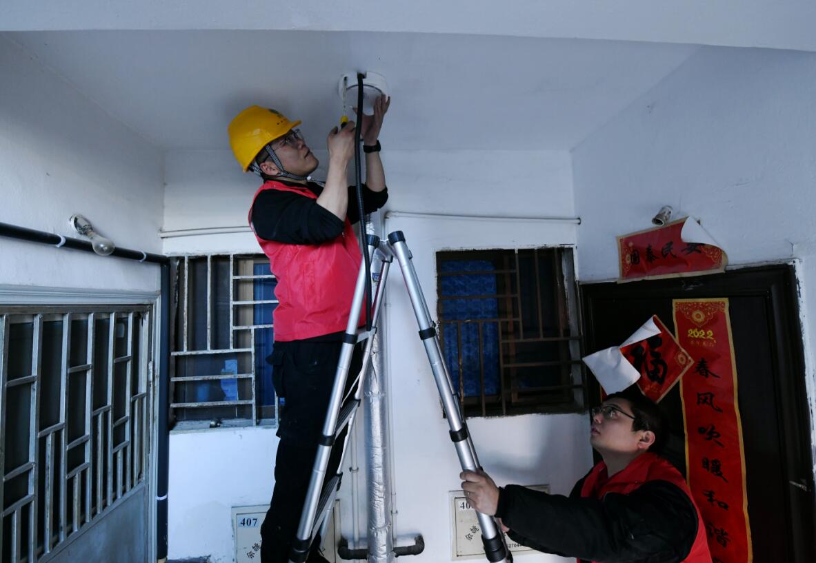 2022年,在日常維護(hù)中,志愿者發(fā)現(xiàn)有的居民將開關(guān)改裝在室內(nèi),樓道燈形同虛設(shè),而且之前樓道燈都是物業(yè)電或是家庭用電,電費(fèi)支出一直是一個(gè)問題。為此,團(tuán)隊(duì)創(chuàng)新思維,積極推動(dòng)“點(diǎn)亮黑樓道2.0”項(xiàng)目,把前期單純的樓道燈維修與更換,轉(zhuǎn)變?yōu)橛锰柲軄硖鎿Q,通過光伏板、節(jié)能燈及紅外感應(yīng)裝置等方式來照亮樓道,從根本上解決“黑樓道”問題。