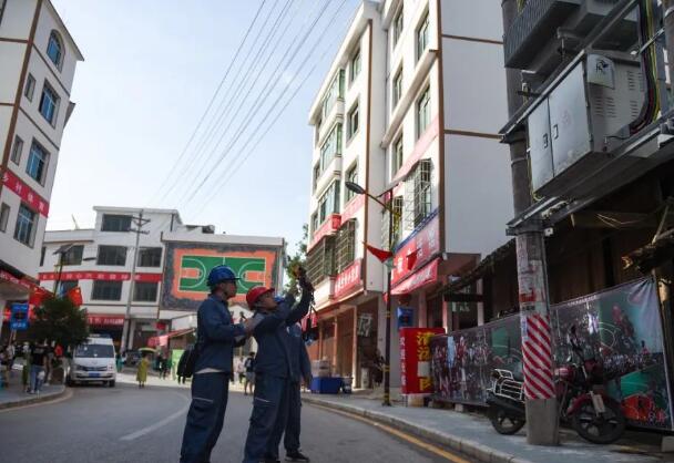 7月15日,在貴州省黔東南苗族侗族自治州臺江縣臺盤鄉(xiāng)臺盤村,南方電網(wǎng)貴州凱里臺江供電局工作人員正在高峰時段對供區(qū)內(nèi)配變測溫測負荷,確保賽事期間電網(wǎng)安全可靠運行。
