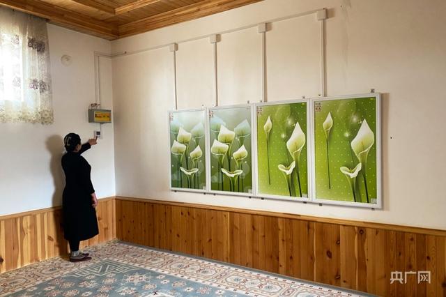 村民卡力比努爾·阿不都許庫正在調(diào)節(jié)電暖設(shè)備溫度(央廣網(wǎng)發(fā)楊林?jǐn)z)